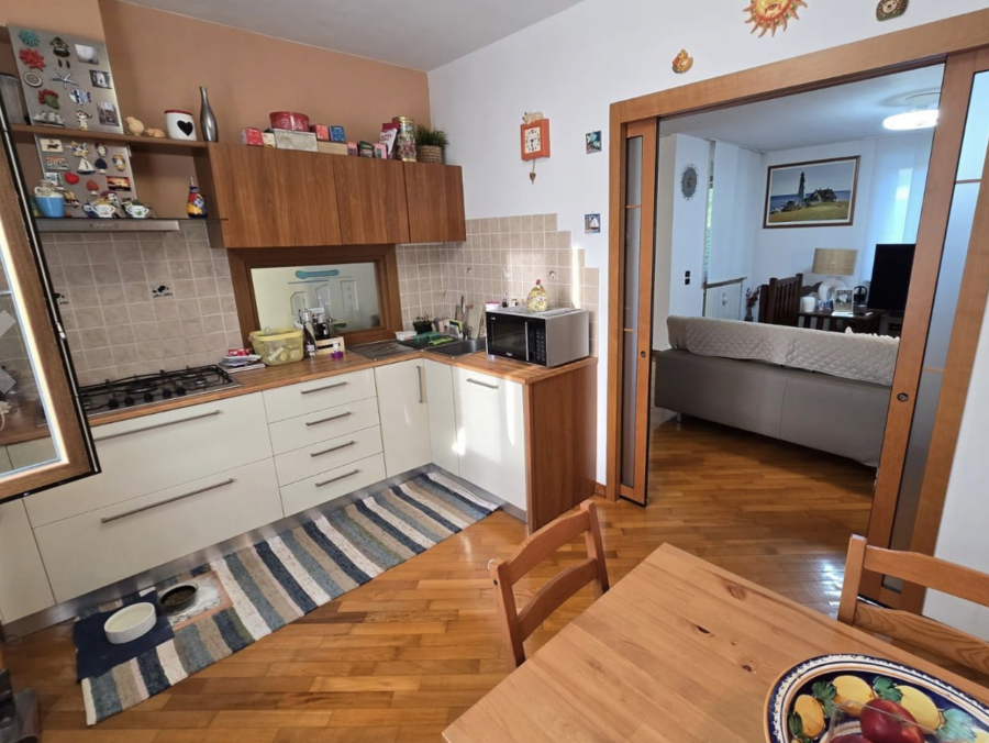 Ingresso accogliente, luminoso soggiorno con camino, zona pranzo e cucina abitabile, due camere da letto e infine ampio bagno con vasca idromassaggio;